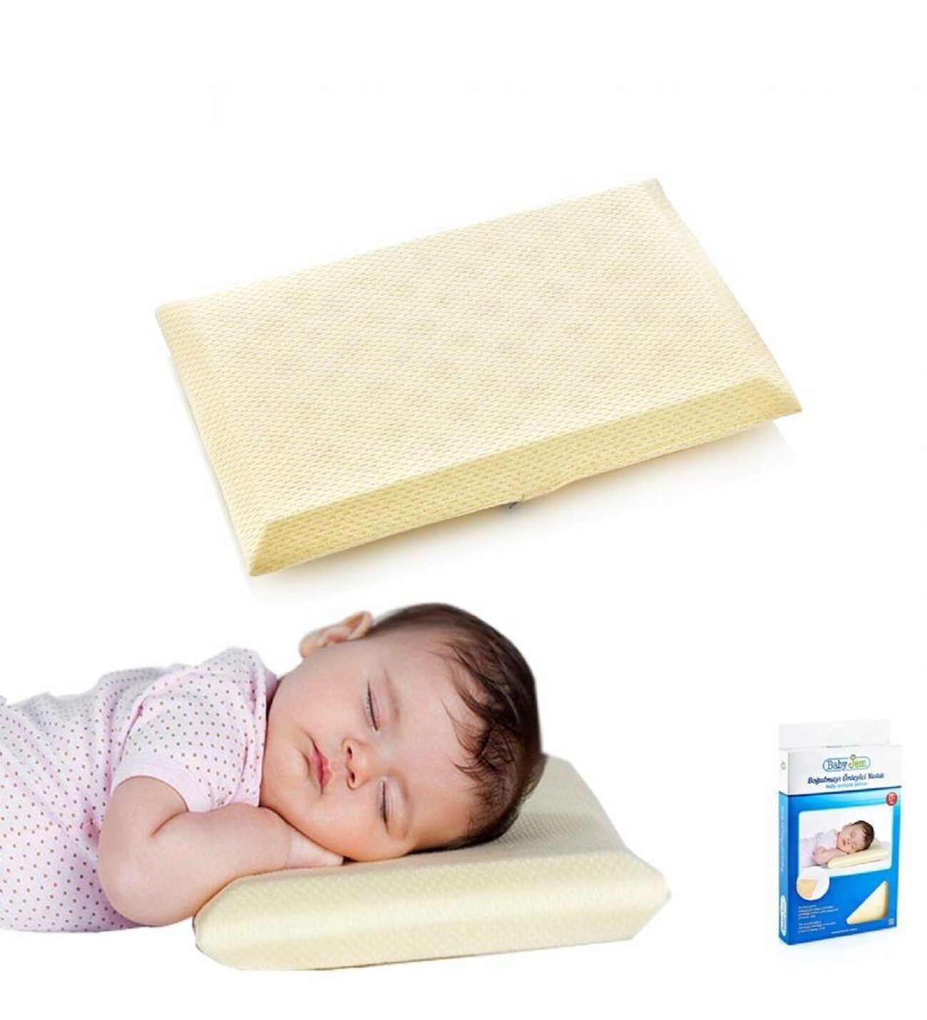 Bu tip felaketleri önlemek amacıyla geliştirilmiş olan Baby Jem boğulma önleyici yastık, delikli sünger yapısı ve bebek boynuna uyumlu sünger kalınlığı ile bebeğinizin rahat uyumasını sağlar.
