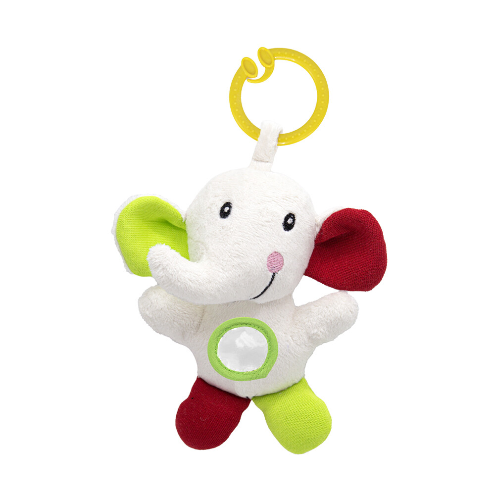 Titreşimli çıngırak fil dokusu ve canlı renkleri, bebeğinizin görme ve dokunma duyularının gelişimine yardımcı olur.
